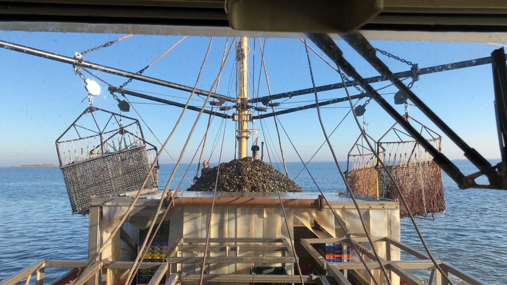 Platte oesters in witte wijnsaus op een bedje van spinazie